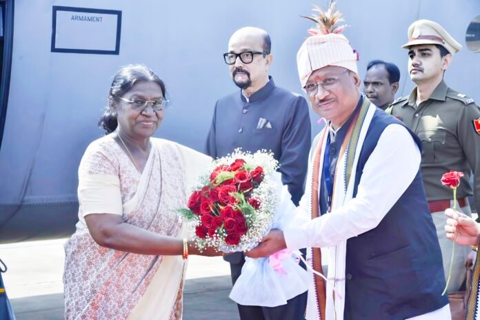 मां दंतेश्वरी एयरपोर्ट पर राष्ट्रपति द्रौपदी मुर्मू का भव्य स्वागत, बस्तर पण्डुम के शुभारंभ हेतु पहुंचीं जगदलपुर रायपुर/जगदलपुर, 07 फरवरी 2026। देश की राष्ट्रपति श्रीमती द्रौपदी मुर्मू का आज बस्तर संभाग मुख्यालय जगदलपुर में गरिमामय आगमन हुआ। वे ऐतिहासिक लालबाग मैदान में आयोजित तीन दिवसीय संभाग स्तरीय बस्तर पण्डुम के शुभारंभ कार्यक्रम में शामिल होने पहुंची हैं।मां दंतेश्वरी एयरपोर्ट जगदलपुर पर राष्ट्रपति श्रीमती मुर्मू का आत्मीय एवं सम्मानपूर्ण स्वागत राज्यपाल श्री रमेन डेका और मुख्यमंत्री श्री विष्णु देव साय ने किया। इस अवसर पर उप मुख्यमंत्री श्री विजय शर्मा, केंद्रीय राज्य मंत्री श्री तोखन साहू एवं वन मंत्री श्री केदार कश्यप ने राष्ट्रपति का अभिनंदन किया।सांसद श्री महेश कश्यप, जगदलपुर विधायक श्री किरण सिंह देव और महापौर श्री संजय पांडे ने भी राष्ट्रपति का अभिवादन करते हुए उनका स्वागत किया। स्वागत समारोह के दौरान कमिश्नर श्री डोमन सिंह, पुलिस महानिरीक्षक श्री सुन्दरराज पी., कलेक्टर श्री आकाश छिकारा और पुलिस अधीक्षक श्री शलभ सिन्हा सहित अन्य जनप्रतिनिधि एवं अधिकारी उपस्थित रहे।राष्ट्रपति के आगमन से बस्तर अंचल में उत्साह और गौरव का वातावरण है। बस्तर पण्डुम के आयोजन को लेकर प्रशासन द्वारा व्यापक तैयारियां की गई हैं और सुरक्षा के पुख्ता इंतजाम किए गए हैं। राष्ट्रपति के इस दौरे को बस्तर की सांस्कृतिक पहचान और परंपरा के लिए ऐतिहासिक क्षण माना जा रहा है।