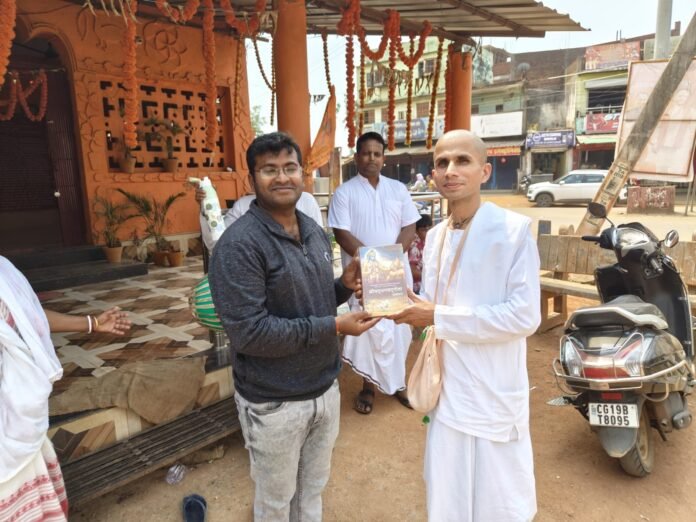 पखांजूर में इस्कॉन भक्तों द्वारा नगर संकीर्तन, गीता वितरण एवं जलदान कार्यक्रम संपन्न पखांजूर, कांकेर, छत्तीसगढ़ , 19 अप्रैल 2026।इस्कॉन प्रचार केंद्र पखांजूर के भक्तों द्वारा आज नगर में भक्ति एवं सेवा का सुंदर संगम देखने को मिला। भक्तों ने नगर संकीर्तन करते हुए पूरे क्षेत्र में आध्यात्मिक वातावरण का निर्माण किया तथा आमजन को श्रीमद्भगवद्गीता का वितरण कर धर्म और ज्ञान का संदेश दिया। साथ ही भीषण गर्मी को ध्यान में रखते हुए राहगीरों एवं नागरिकों के लिए शरबत वितरण यानि जलदान सेवा भी की गई।इस कार्यक्रम का आयोजन इस्कॉन रायपुर के वरिष्ठ प्रभुओं के मार्गदर्शन में किया गया। कार्यक्रम में शिक्षामृत प्रभु, सुबल केशव प्रभु, मधुर निमाई प्रभु, मुकेश प्रभु, विनीत प्रभु, तनुज प्रभु, अजय प्रभु, उत्तम प्रभु, राकेश मित्र प्रभु, कविता माताजी, गोष्ठो माताजी सहित अन्य सभी भक्तों ने बढ़-चढ़कर भाग लेते हुए विशेष सेवा प्रदान की।नगर संकीर्तन के दौरान “हरे कृष्ण हरे कृष्ण, कृष्ण कृष्ण हरे हरे, हरे राम हरे राम, राम राम हरे हरे” के कीर्तन से पूरा वातावरण भक्तिमय हो उठा। स्थानीय लोगों ने भी इस पहल की सराहना करते हुए कार्यक्रम में सहभागिता निभाई।इस्कॉन प्रचार केंद्र के इस आयोजन ने न केवल आध्यात्मिक जागरूकता बढ़ाई, बल्कि समाज सेवा का भी उत्कृष्ट उदाहरण प्रस्तुत किया।
